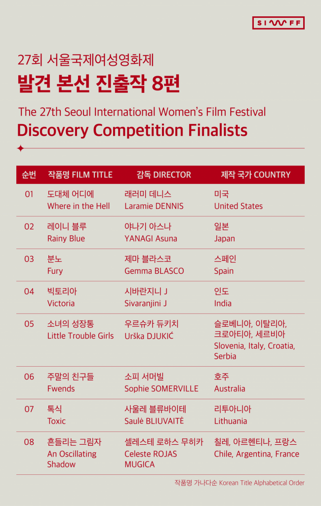 27회 서울국제여성영화제 본선 진출작 8편. 서울국제여성영화제