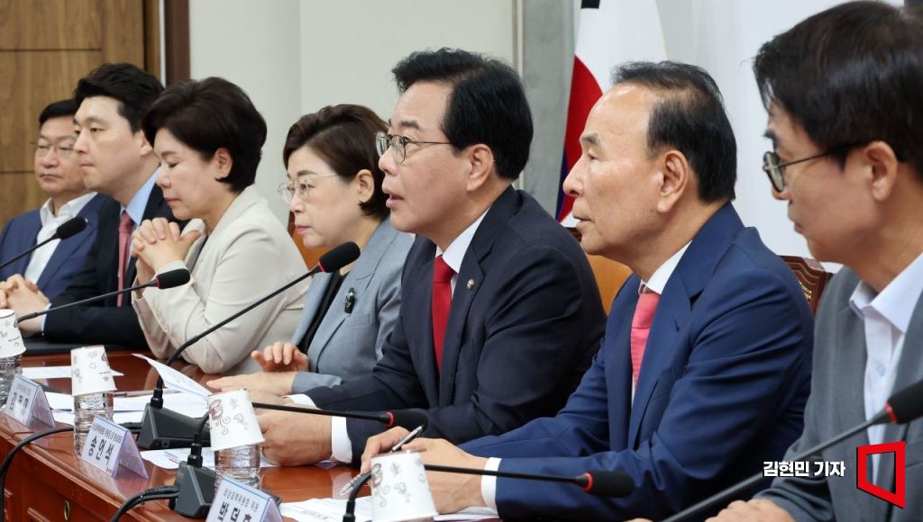 송언석 국민의힘 비상대책위원장 겸 원내대표가 21일 국회에서 열린 비상대책위원회의에서 발언하고 있다. 2025.7.21 김현민 기자