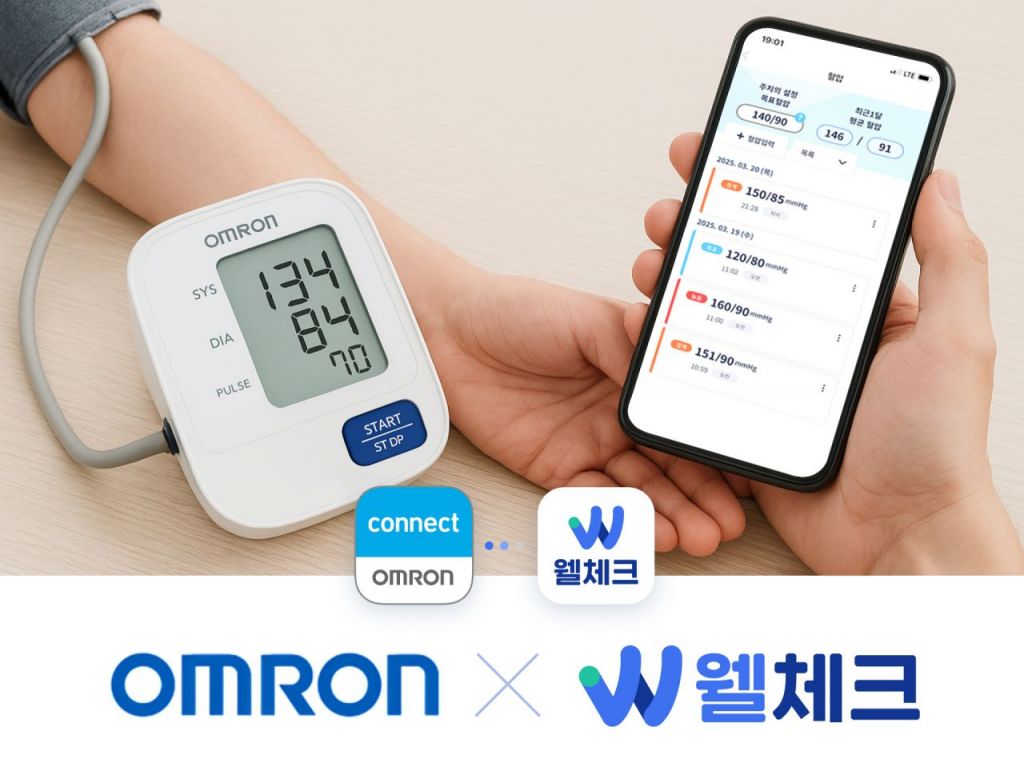 웰체크의 스마트 고혈압 관리 서비스는 이런 불편함을 해소하고 고혈압 관리의 실효성을 높이기 위해 마련됐다. 오므론 혈압계로 측정한 수치는 애플리케이션(앱)에 자동 기록되며, 제휴 병원 의료진은 이를 실시간으로 확인하고 환자 맞춤형 진료에 활용할 수 있다. 환자는 집에서 혈압만 측정하면 되며, 의료진은 앱을 통해 환자 상태를 지속적으로 모니터링할 수 있어 진료의 연속성과 효율성이 크게 향상된다.