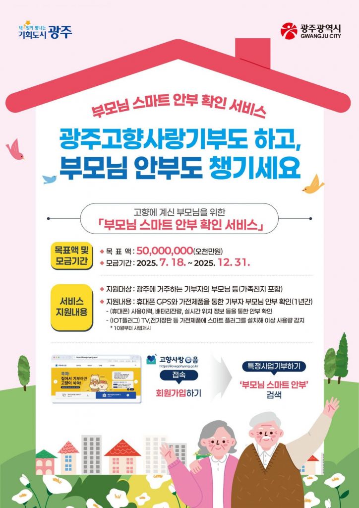 이번에 추진하는 지정 사업은 '스마트 부모님 안부확인 서비스'와 '따순광주 범죄피해자 일상회복 서비스'로, 기부금 8,000만원 모금을 목표로 오는 12월 31일까지 진행한다.
