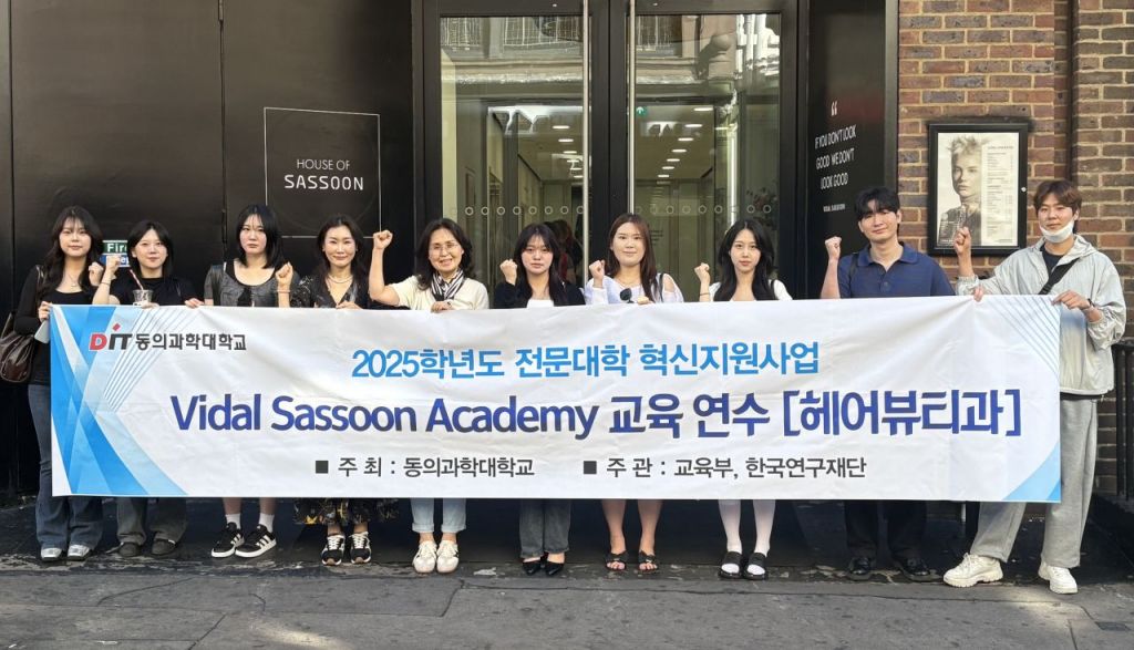 동의과학대학교 헤어뷰티과 재학생들이 영국 런던에 있는 비달사순 아카데미에서 전공 연수를 마치고 돌아왔다.
