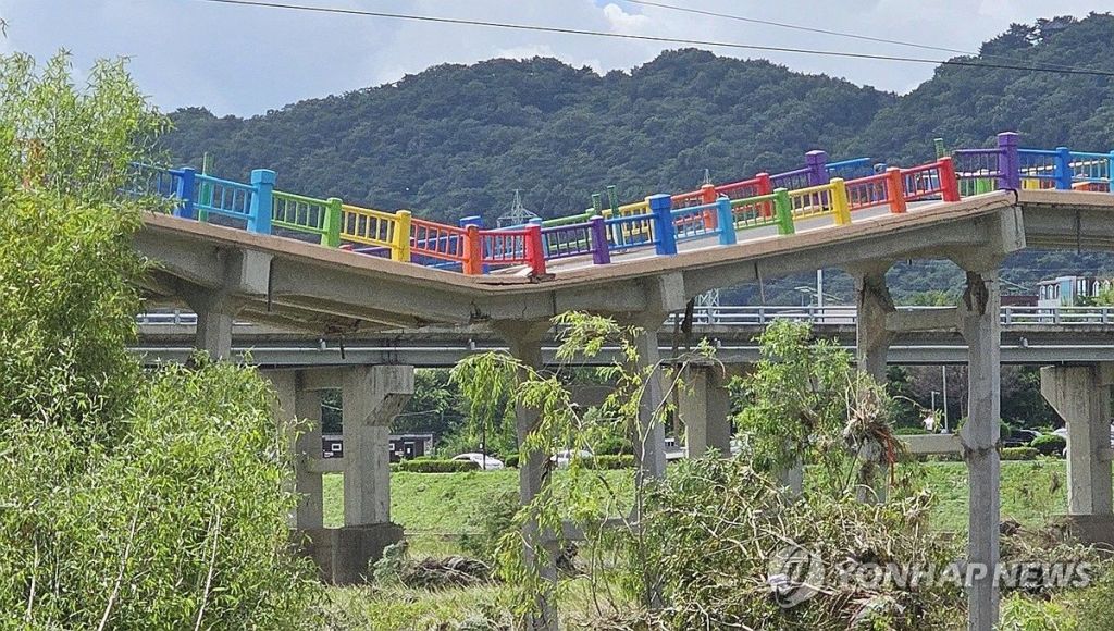 지난 17∼19일 사흘간 최대 330m가 넘는 비가 쏟아진 울산에서는 1924년 지어진 것으로 알려진 구 삼호교 일부 구간이 내려앉아 출입이 통제됐다.