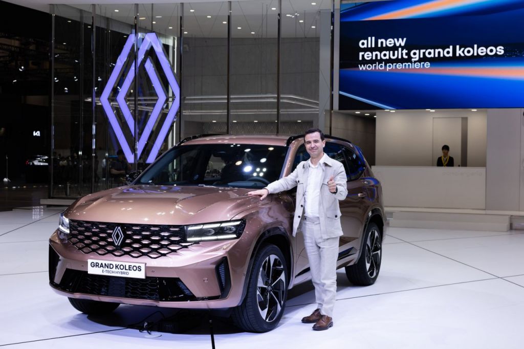 2024 부산모빌리티쇼에서 처음 공개한 그랑 콜레오스와 기념촬영하는 르노코리아 스테판 드블레즈 사장.