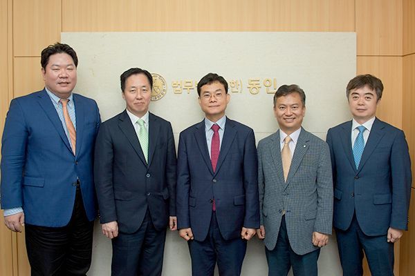 법무법인 동인의 '기업법센터' 구성원.(왼쪽부터 서덕우 미국변호사, 김병주 변호사, 손성락 변호사, 진욱재 변호사, 류정원 변호사)./제공=법무법인 동인.