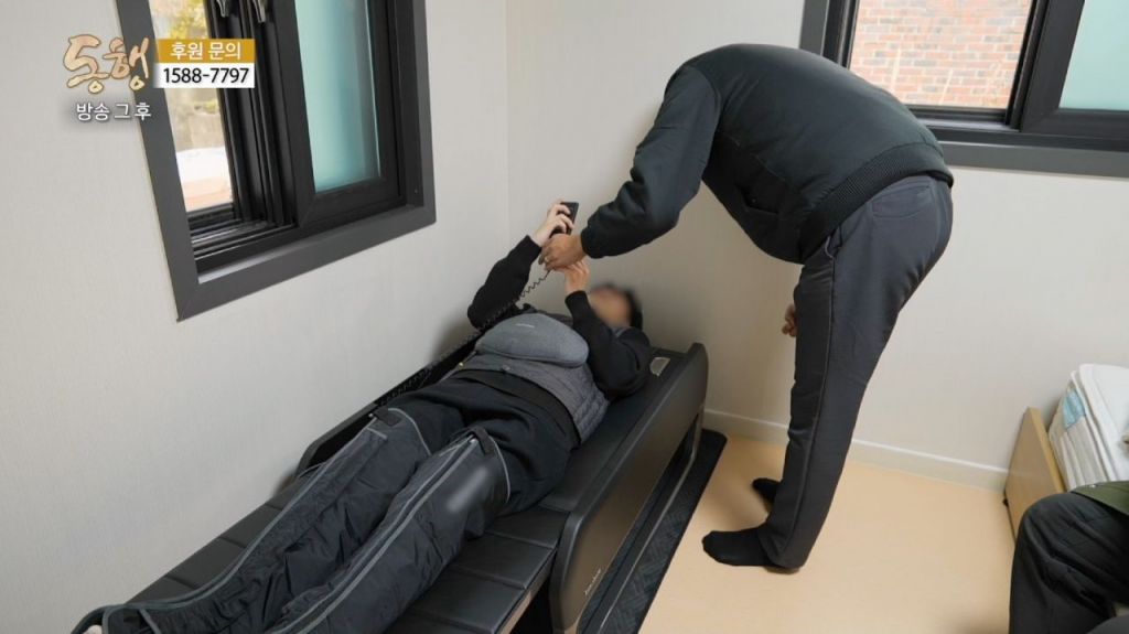 세라젬 임직원이 동행 프로그램 출연자에게 자사의 헬스케어 제품에 대해 설명하고 있다. 세라젬