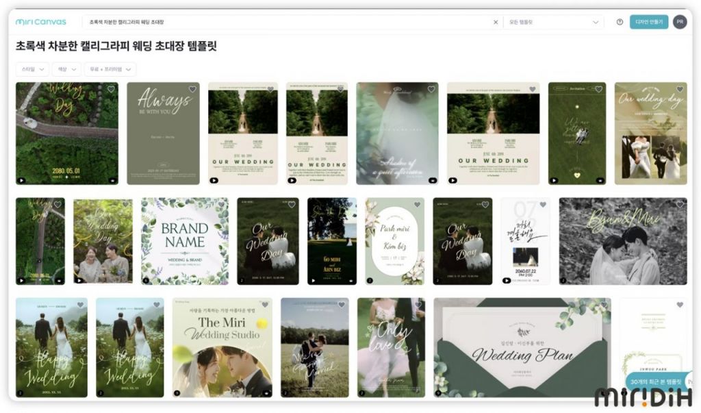 미리클넷 템플릿 검색 예시 이미지. 미리디