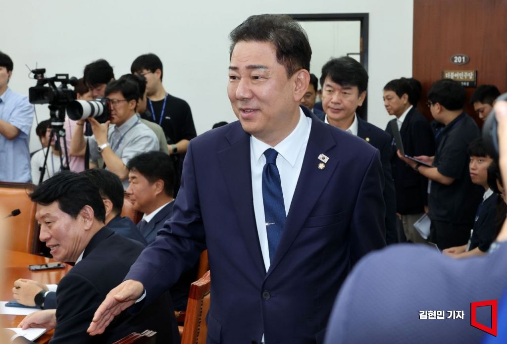김병기 더불어민주당 당대표 직무대행 겸 원내대표가 22일 국회에서 열린 원내대책회의에 참석하고 있다.