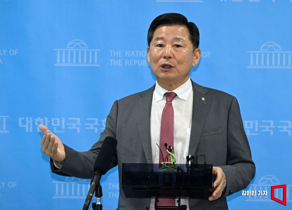 이철규 국민의힘 의원이 22일 국회 소통관에서 순직해병특검 수사 관련 입장 발표 기자회견을 마친 뒤 취재진의 질문에 답하고 있다.