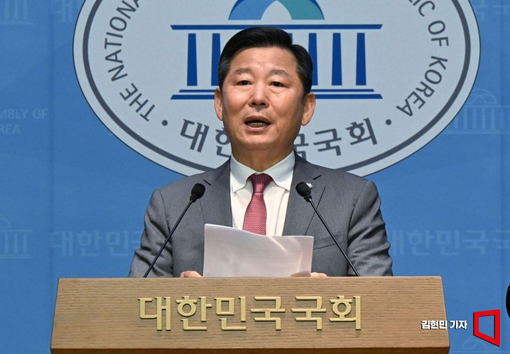 이철규 국민의힘 의원이 22일 국회 소통관에서 순직해병특검 수사 관련 입장 발표 기자회견을 하고 있다.