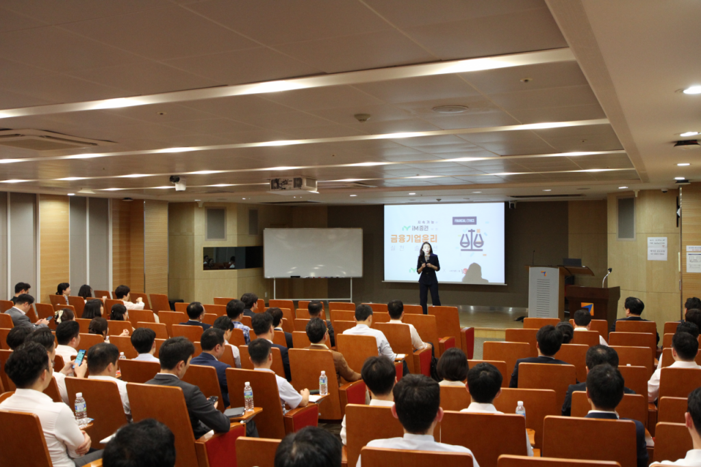 iM증권이 22일 금융투자교육원 리더스홀에서 윤리경영 문화 확산을 위한 교육을 진행하고 있다. iM증권