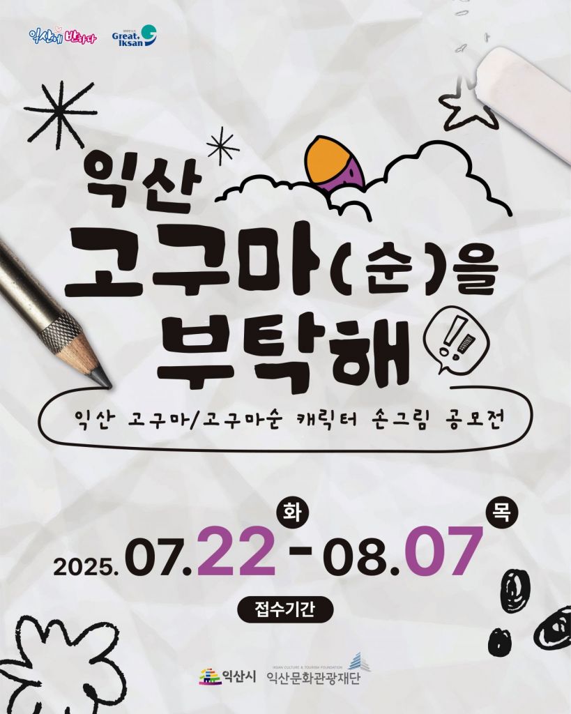 시 관계자는 "고구마와 고구마순은 익산을 대표하는 농산물로, 이번 공모전으로 청소년의 상상력이 담긴 캐릭터가 축제의 얼굴로 탄생하길 기대한다"며 "고구마처럼 달콤하고 정겨운 축제를 통해 방문객들이 함께 어우러질 수 있도록 준비하겠다"고 말했다.
