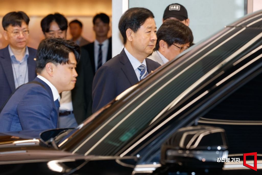 미국 측의 요청으로 한미 2+2 통상 협의가 돌연 연기된 24일 인천국제공항 제2여객터미널에서 구윤철 경제부총리 겸 기획재정부 장관이 출국을 취소하고 공항을 나서고 있다. 2025.7.24. 강진형 기자
