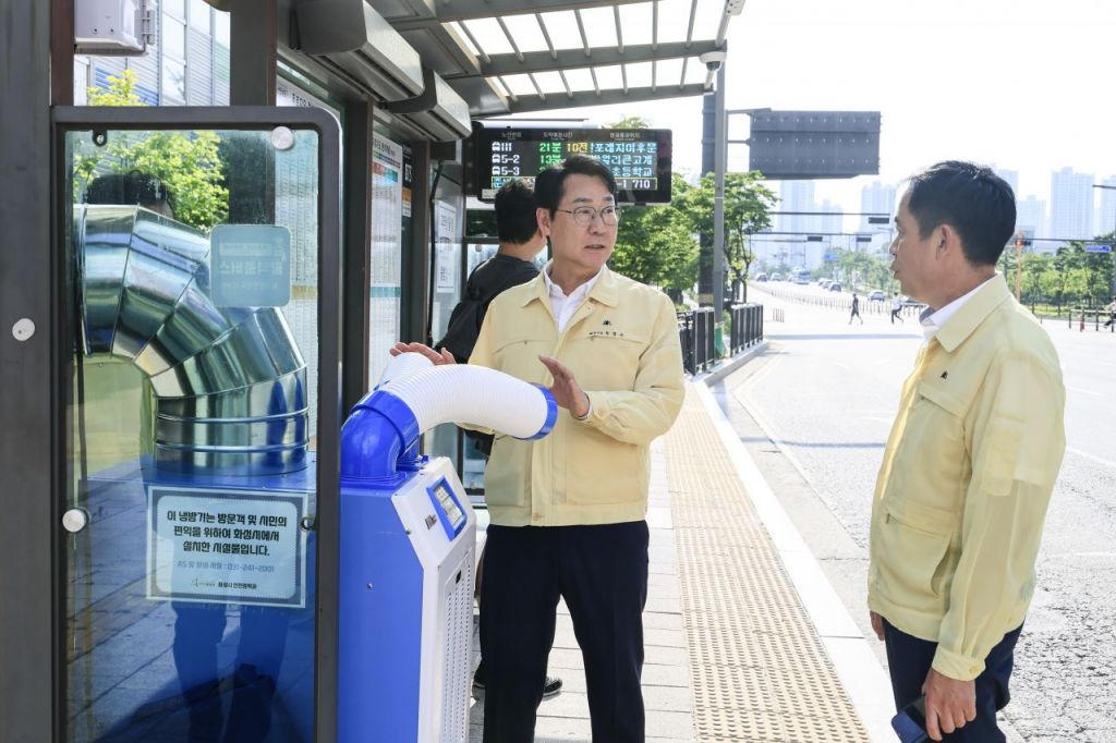 정 시장은 또 영천동에 설치된 스마트 쉘터 정류장을 방문해 야외용 냉방기 정상 작동 여부와 실내 공기질 및 적정온도 여부 등을 직접 확인하고 시민들과 소통했다. 스마트쉘터는 냉방장치와 공기 정화 시스템이 설치된 부스 형태의 버스 정류장이다. 시는 폭염에 대비해 관내 스마트쉘터 정류장을 올해부터 기존 20곳에서 41곳으로 확대해 운영한다.