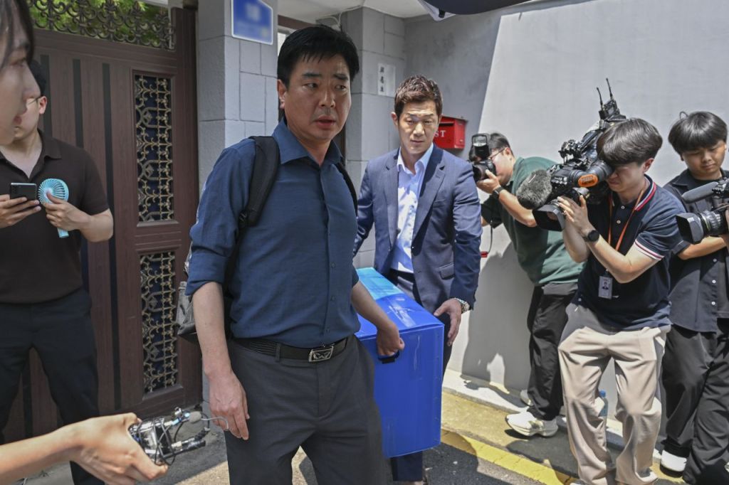'12·3 비상계엄' 관련 내란·외환 사건을 수사하는 조은석 특별검사팀이 24일 서울 종로구에 있는 한덕수 전 국무총리 자택 압수수색을 마친 뒤 압수품을 들고 이동하고 있다. 연합뉴스