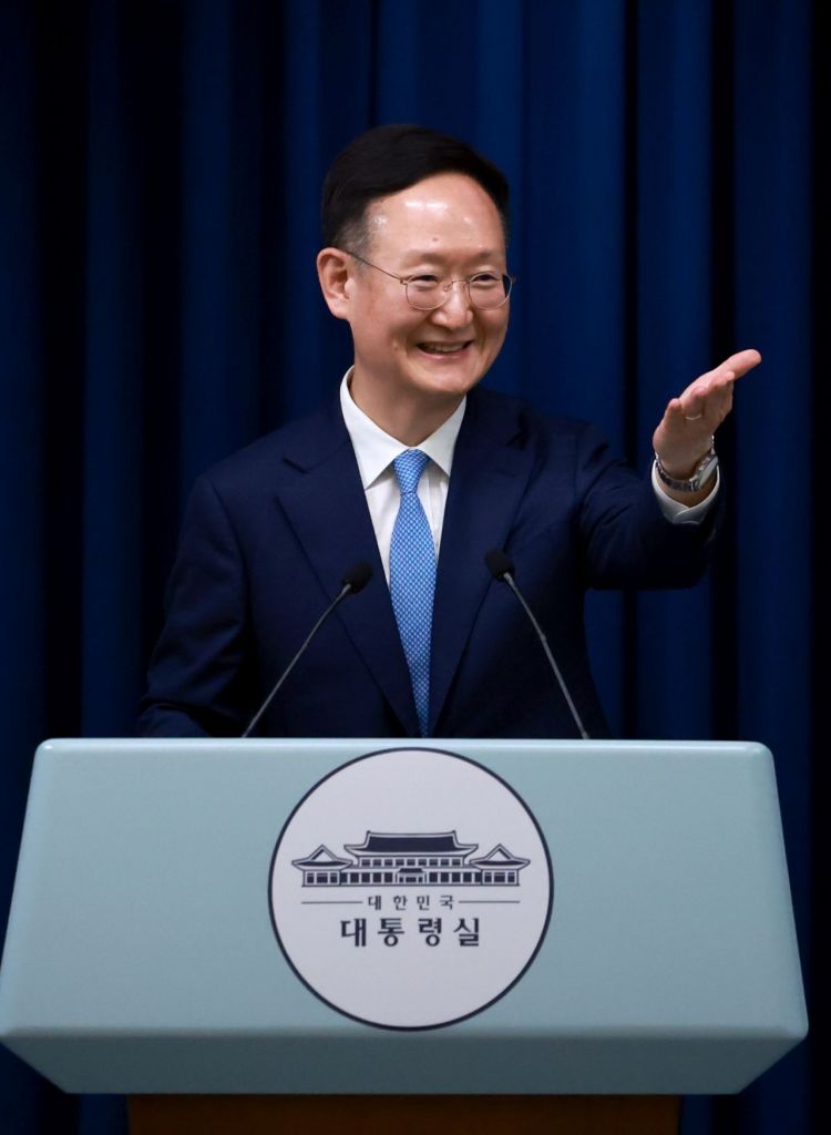 붕욱 대통령실 민정수석이 24일 서울 용산 대통령실 청사에서 강훈식 대통령비서실장 브리핑 뒤 취재진 질문을 받고 있다. 연합뉴스