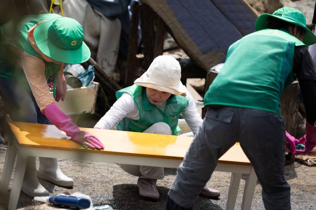 김혜경 여사가 24일 가평군 백둔리 수해현장에서 봉사활동을 하고있다. 사진=대통령실