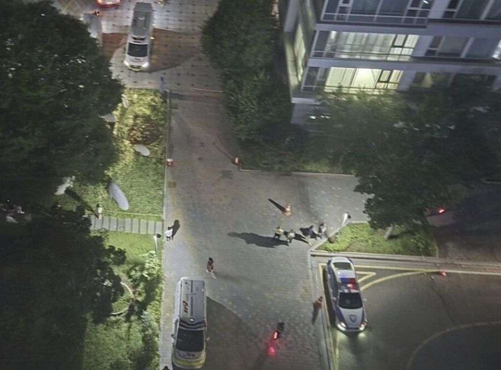 지난 20일 오후 9시 31분께 인천 연수구 송도동 모 아파트에서 아버지가 사제 총기를 발사해 아들을 숨지게 한 사건이 발생했다. 사진은 총기 사건 현장에 출동한 경찰과 소방 당국..연합뉴스/ 독자 제공