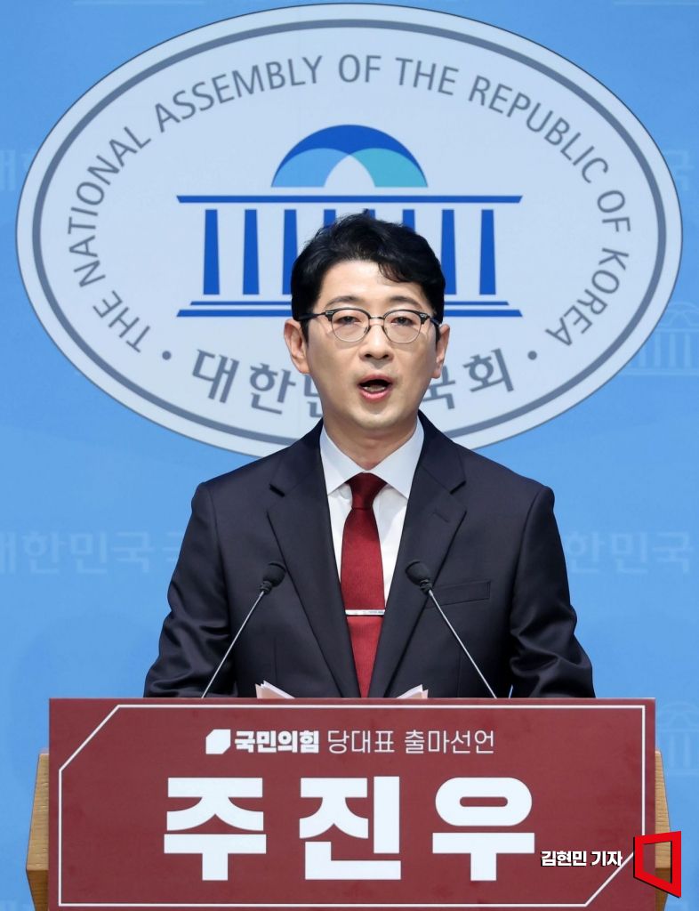주진우 국민의힘 의원이 24일 국회 소통관에서 국민의힘 당대표 출마 선언을 하고 있다. 2025.7.24 김현민 기자