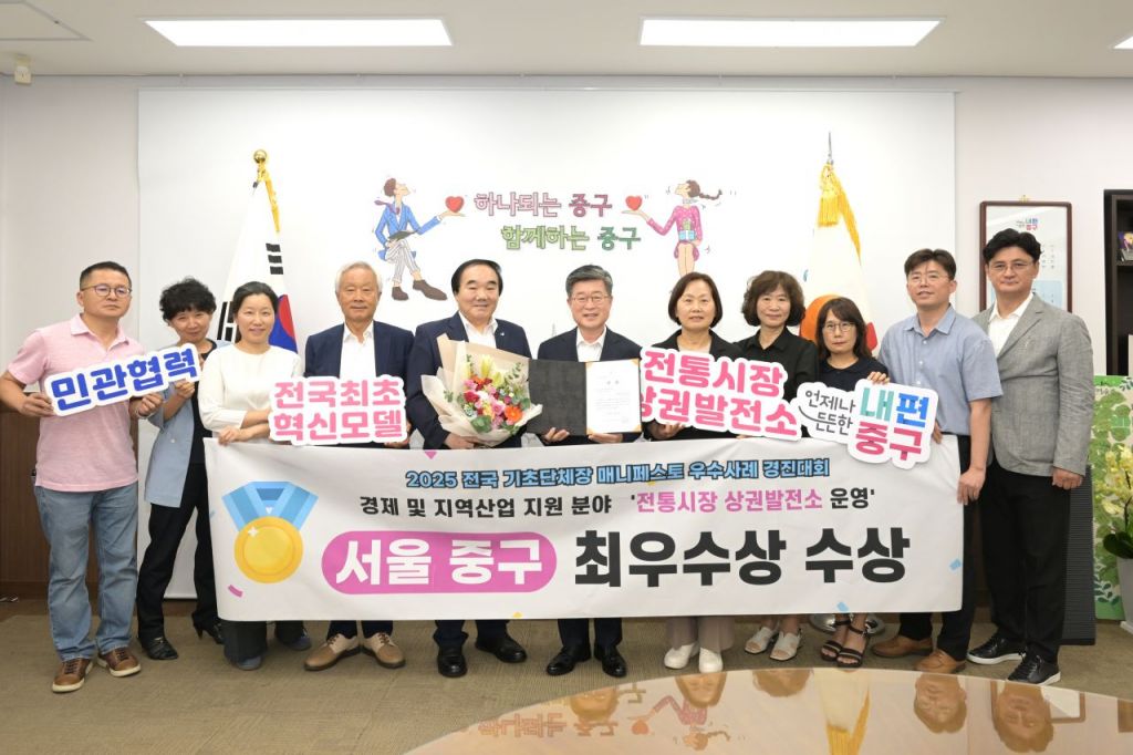 서울 중구(구청장 김길성)가 전국 최초 민관협력 상권관리 전문기구인 '(사)서울중구 전통시장 상권발전소'(상권발전소) 사례로 '2025 전국 매니페스토 우수사례 경진대회'에서 '경제 및 지역산업 지원' 분야 최우수상을 수상했다고 28일 밝혔다.