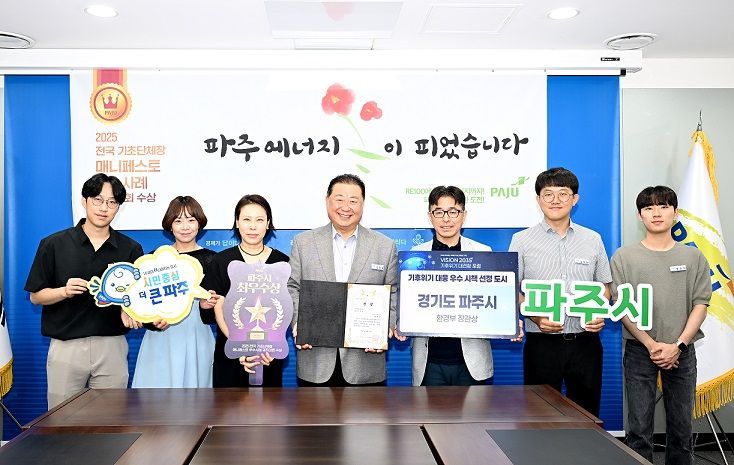 경기 파주시는 지난 24일 에너지 전환을 위한 알이100(RE100) 정책에서 탁월한 성과를 인정받아 'VISION 2035! 기후위기 대전환 포럼' 환경부장관상과 '2025 전국 기초단체장 매니페스토 우수사례 경진대회' 기후·환경·생태 분야 최우수상을 동시에 수상하는 쾌거를 이루었다고 28일 밝혔다.