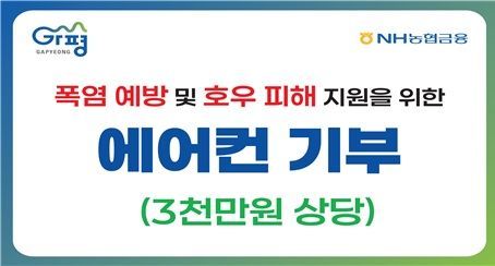 농협금융지주가 지난 24일 최근 집중호우로 인해 특별재난지역으로 지정된 경기도 가평군에 3천만원 상당의 에어컨을 기부하기로 했다.