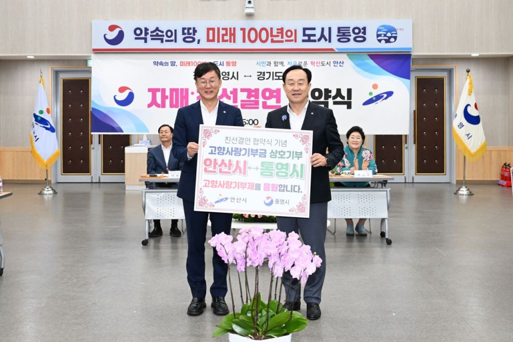 행사에서는 협약을 기념해 안산시는 통영시에 약 1500만 원을, 통영시는 안산시에 약 1009만 원을 고향사랑기부제로 각각 상호 기부했다.