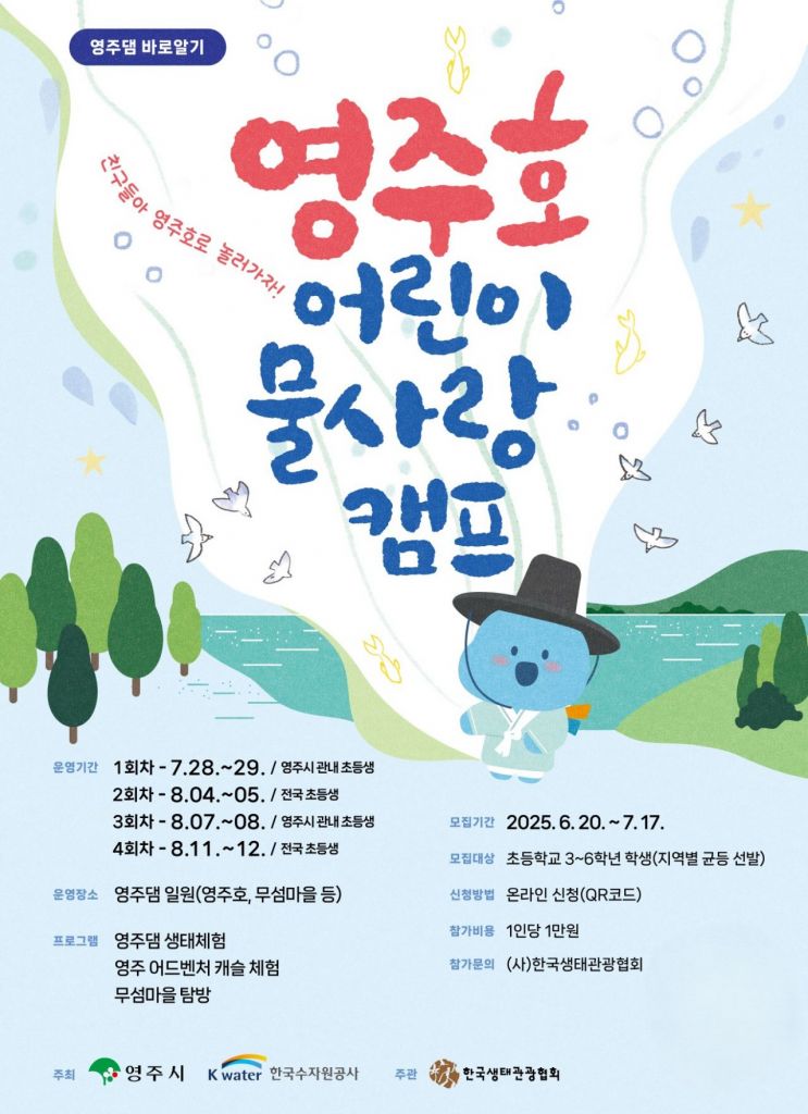 영주시 관계자는 "환경 보전과 물관리 중요성을 어린이들이 직접 배우는 교육형 프로그램으로 기획했다"며 "영주호 생태관광 활성화와 지역 자원의 가치 확산에 기여할 것"이라고 전했다.