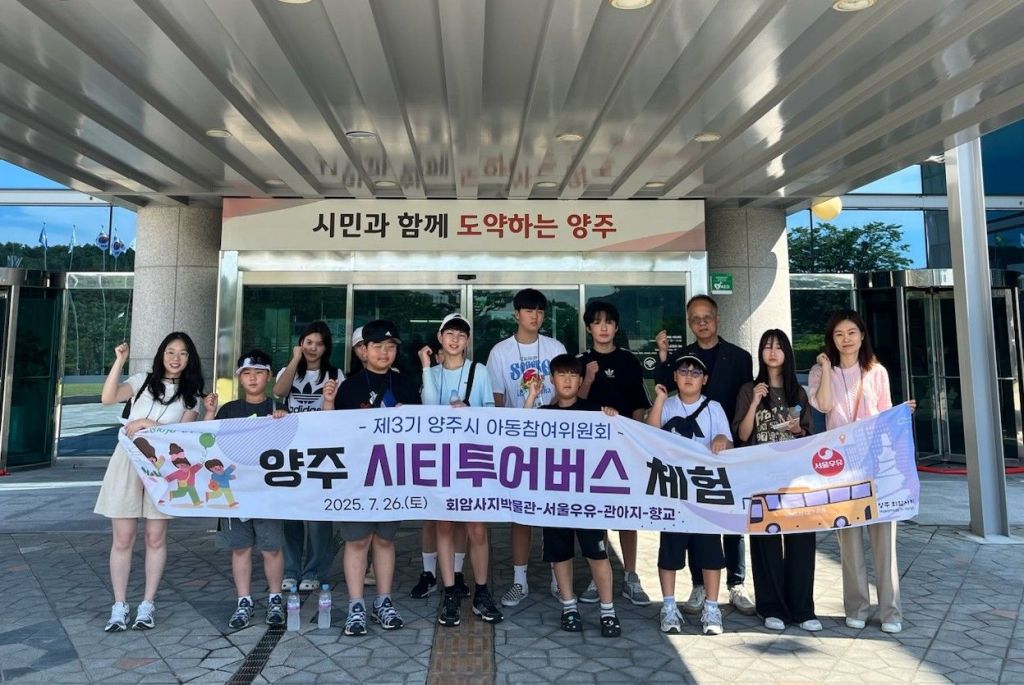 양주시 아동참여위원회가 지난 26일 관내 주요 시설 및 문화재를 둘러보는 '양주 시티투어'에 나서고 있다. 양주시 제공
