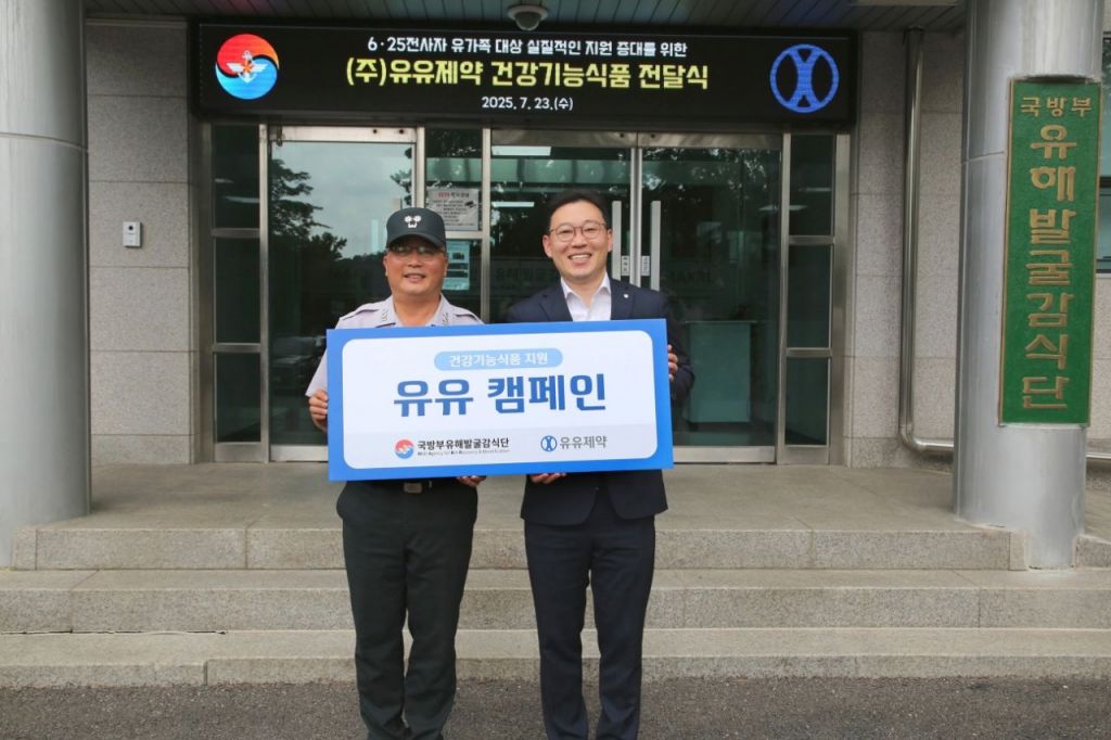 유유제약이 국방부 유해발굴감식단(국유단)에 건강기능식품을 지원했다고 28일 밝혔다.
