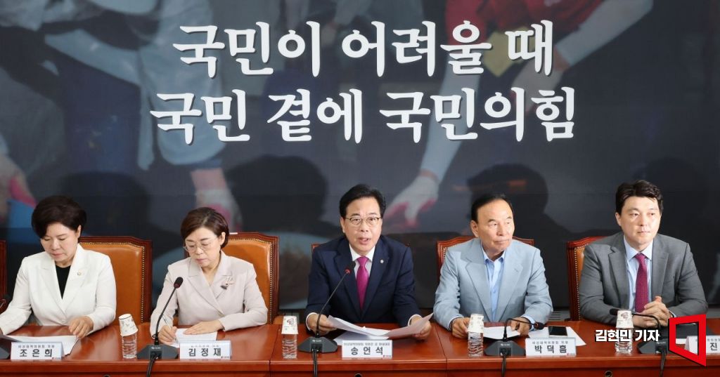 송언석 국민의힘 비대위원장 겸 원내대표가 28일 국회에서 열린 비상대책위원회의에서 발언하고 있다.
