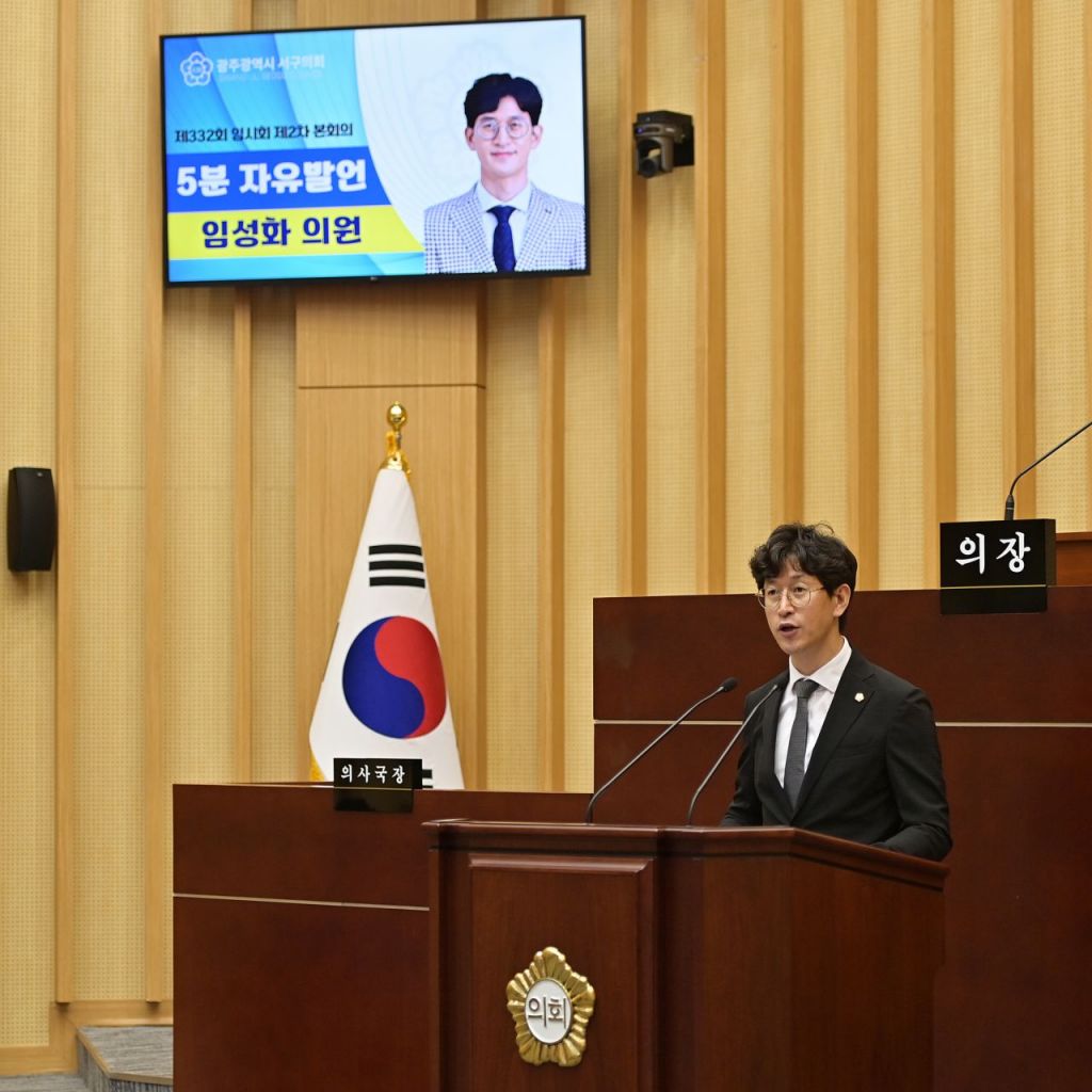 임성화 광주 서구의원이 최근 제332회 임시회 제2차 본회의에서 '5분 자유발언'을 하고 있다. 임성화 의원실 제공