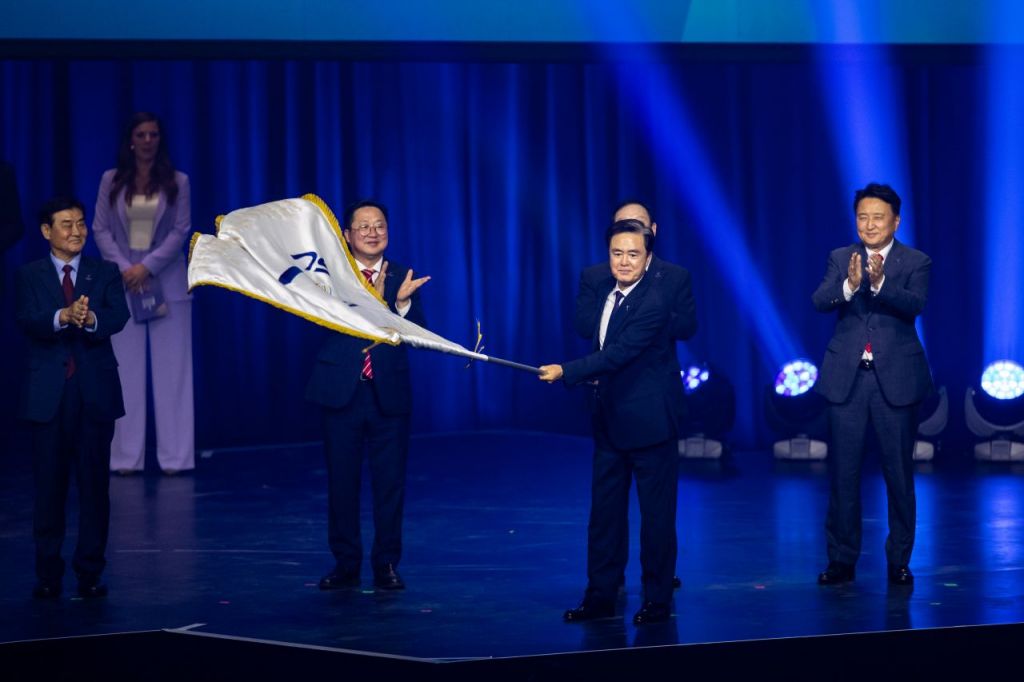깃발은 라인루르에서 2027년 대회 개최지인 충청권으로 전달됐다. 이 자리에는 김 지사와 함께 이장우 대전시장, 최민호 세종시장, 김영환 충북도지사, 강창희 조직위원장이 참석했다.