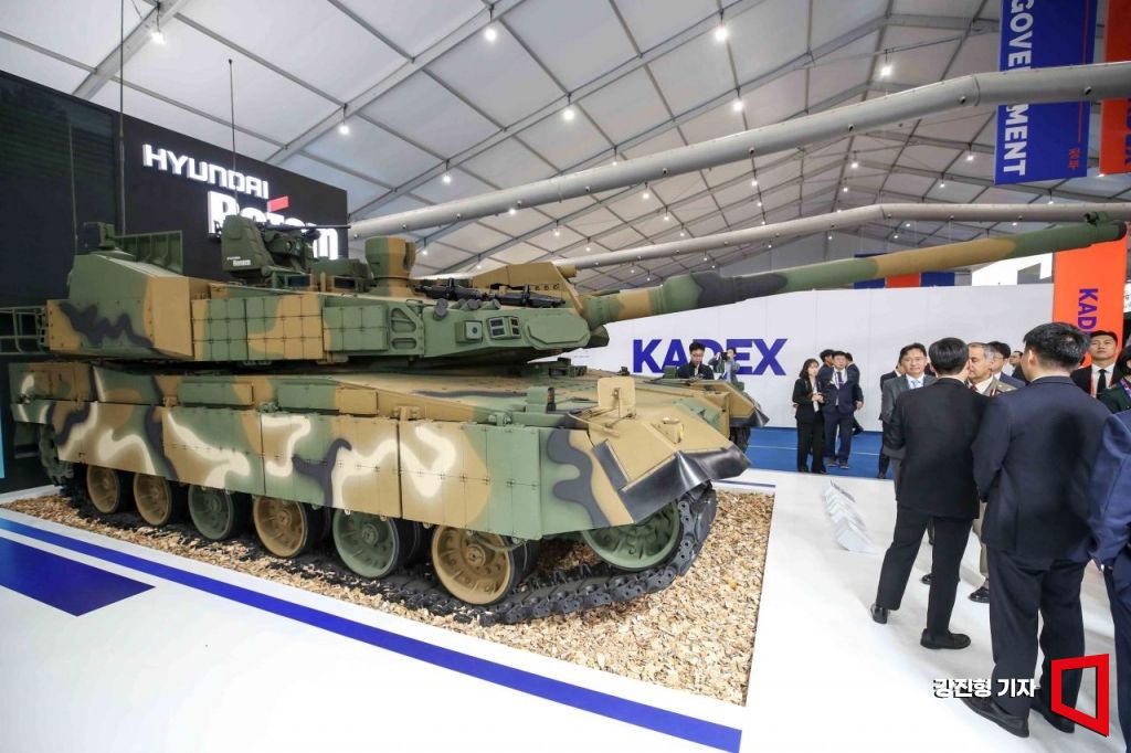지난해 10월2일 충남 계룡대에서 열린 '대한민국 국제방위산업전시회'에서 현대로템의 K2전차가 전시돼 있다. 강진형 기자.