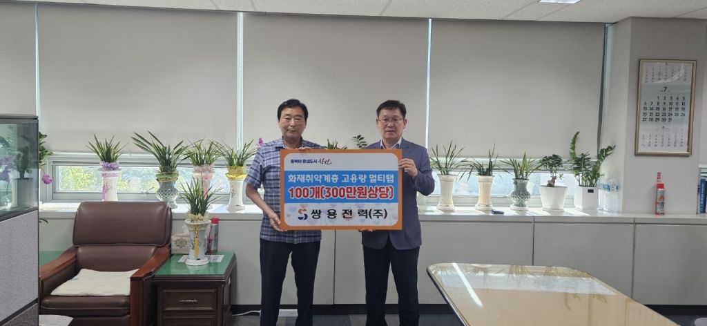 쌍용전력(주), 취약계층 화재 예방 위해 고용량 멀티탭 기탁.