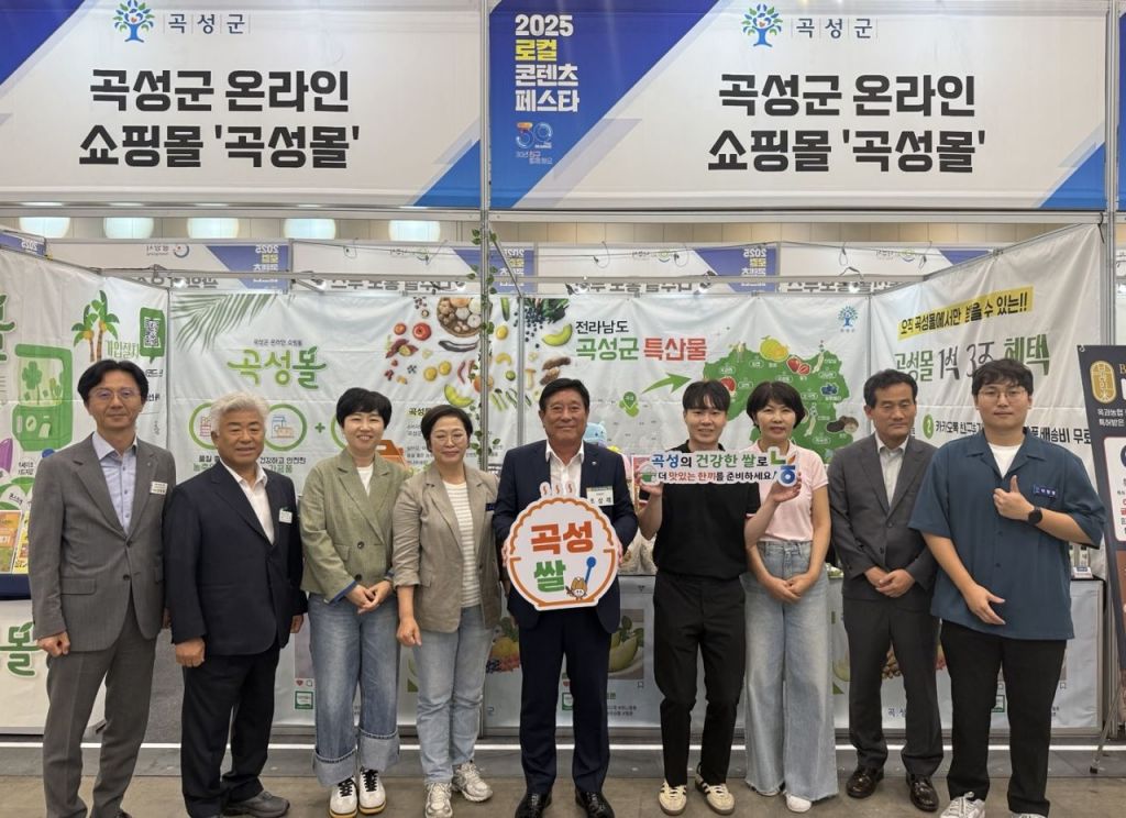 조상래 곡성군수가 '2025로컬콘텐츠페스타'에 참석, 곡성몰 홍보부스에서 관계자들과 기념 촬영을 하고 있다. 곡성군 제공