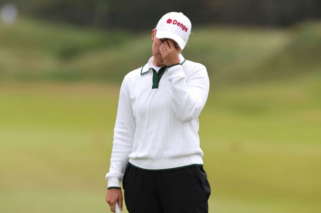 나나 마센이 ISPS 한다 위민스 스코티시 오픈 4라운드 3번 홀에서 퍼팅이 빗나가자 실망스러운 표정을 짓고 있다. 에어셔(스코틀랜드)=AP연합뉴스