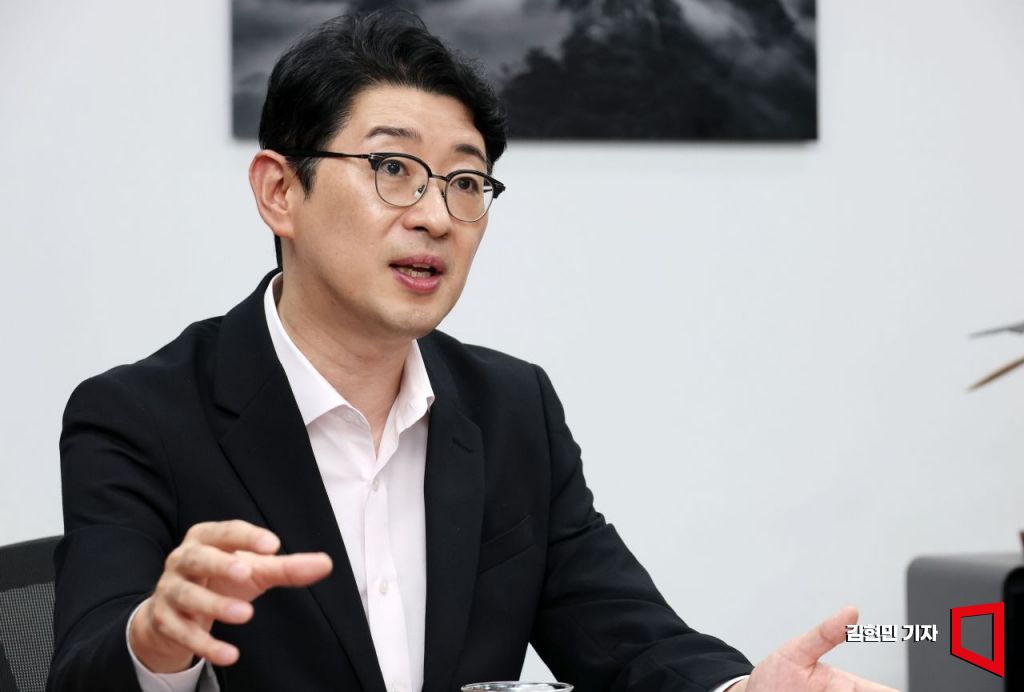국민의힘 당 대표 출마를 선언한 주진우 의원이 28일 국회에서 아시아경제와 인터뷰를 하고 있다. 김현민 기자