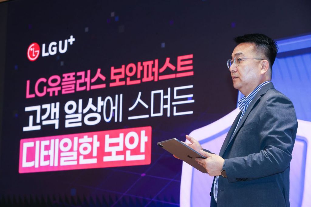 홍관희 LG유플러스 정보보안센터장이 29일 오전 서울 용산구 LG유플러스 사옥에서 열린 기자간담회에서 보안퍼스트 전략을 소개하고 있다. LG유플러스 제공