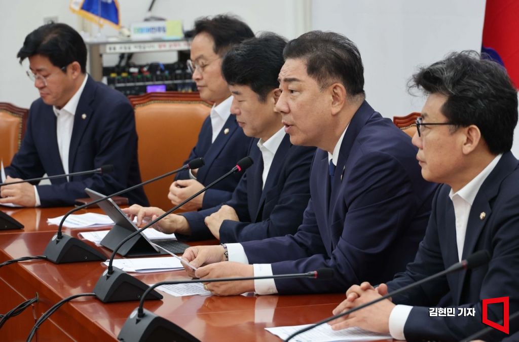 김병기 더불어민주당 당대표 직무대행 겸 원내대표가 29일 국회에서 열린 원내대책회의에서 발언하고 있다. 2025.7.29 김현민 기자