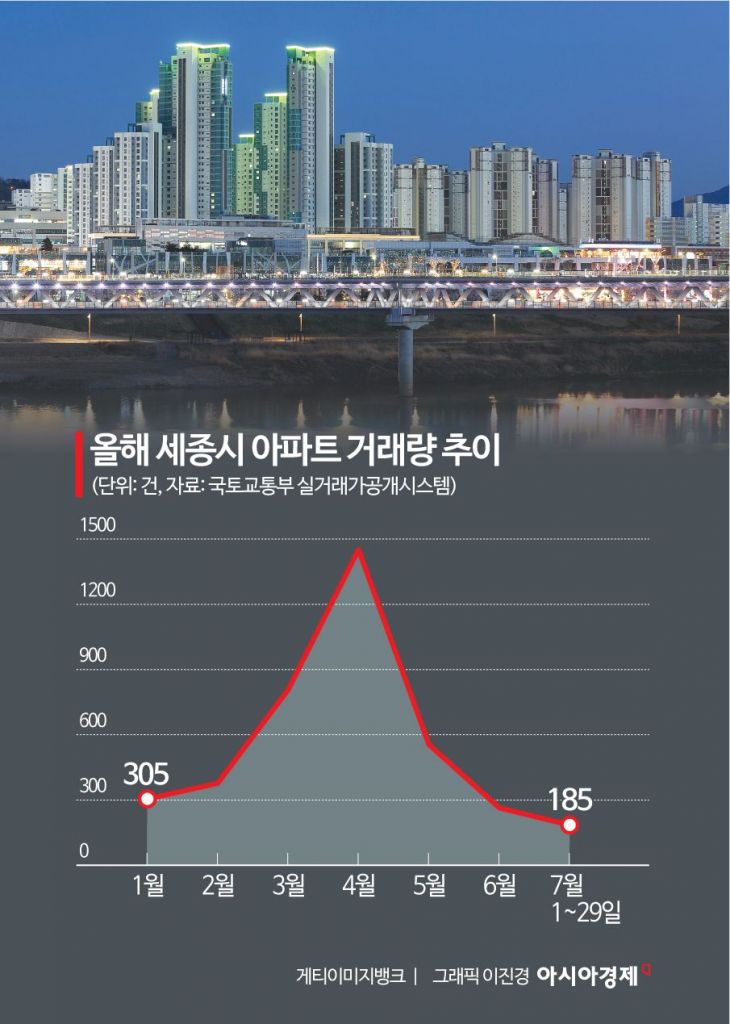 연초만 해도 세종 아파트 시장은 비상계엄으로 조기 대선 국면에 돌입하고 대통령실·국회 이전 등 공약이 나오면서 거래량이 급증했다. 특히 지난 3월 이재명 대통령이 더불어민주당 대표 시절 대통령실을 세종으로 이전하는 것을 검토하라고 당내에 지시했다는 소식이 전해지자 이목이 집중됐다. 이 대통령은 후보 때 임기 내 국회 세종의사당과 대통령 세종 집무실을 건립하겠다고 내걸었고 당시 김문수 국민의힘 후보도 국회 완전 이전과 대통령 제2 집무실 이전을 공약했다. 이로 인해 세종의 거래량은 큰 폭으로 늘어난 바 있다. 지난 1월까지만 해도 305건이던 아파트 거래량은 3월 807건을 기록, 4월에는 1450건을 돌파했다.