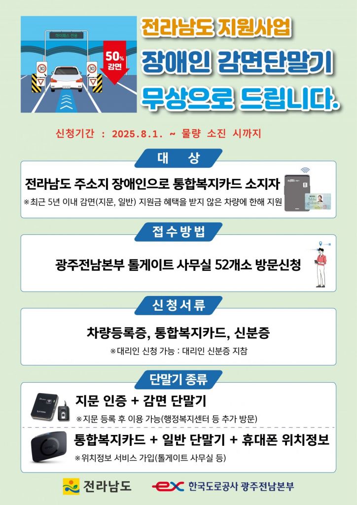 장애인용 고속도로 하이패스 단말기 무상지원 안내 홍보물. 전남도 제공