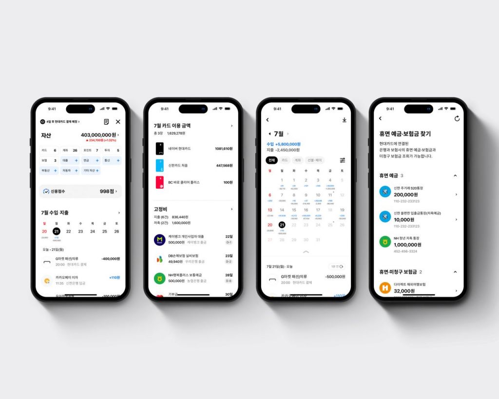 서비스 화면도 직관적으로 개선했다. 내 자산 메인 화면에는 자세한 수입과 지출 일정을 캘린더 형태로 제공한다. 이를 통해 최근 소비 패턴까지 볼 수 있도록 만들었다. 영수증별 수입·지출 분류, 부동산 정보 직접 입력, 연결 종료 자산 알림 기능 등도 추가했다.