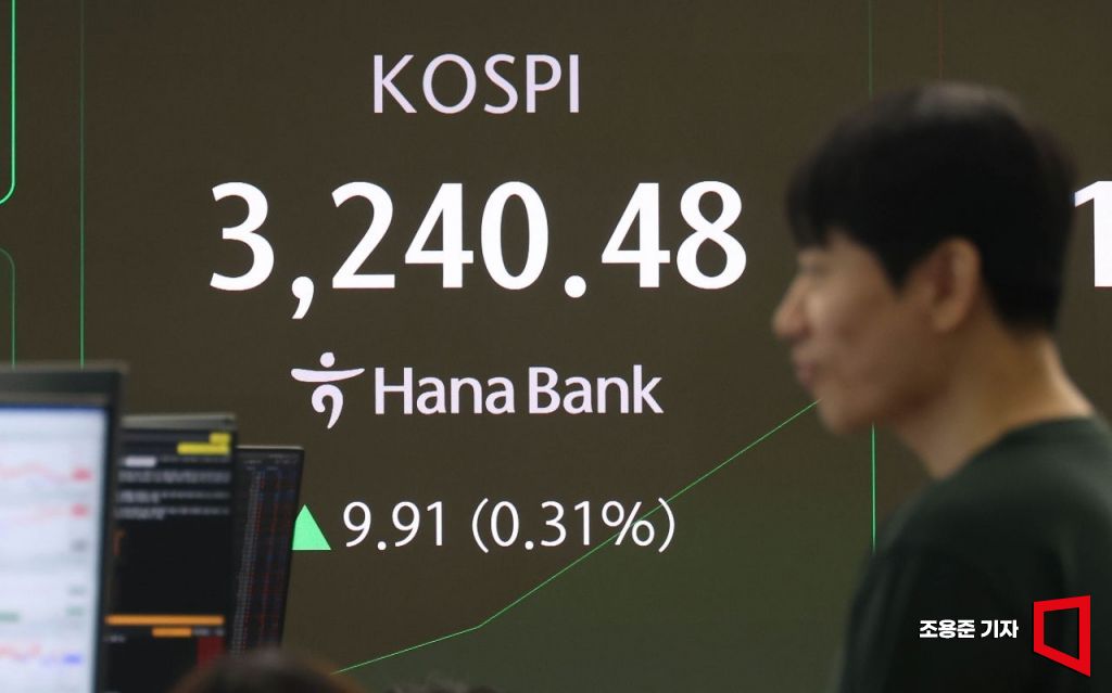 코스피 지수가 4년 만에 최고치를 넘어서며 연일 기록을 경신하고 있는 가운데 30일 서울 중구 하나은행 딜링룸 모니터에 코스피를 비롯해 원/환율 등이 표시돼 있다. 이날 코스피는 장 초반 3,235대에서 강보합세를 보이고 있다. 오전 9시 2분 현재 코스피는 전장보다 7.53포인트(0.23%) 오른 3,238.10을 보이고있다.