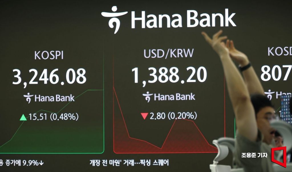 코스피 지수가 4년 만에 최고치를 넘어서며 연일 기록을 경신하고 있는 가운데 30일 서울 중구 하나은행 딜링룸 모니터에 코스피를 비롯해 원/환율 등이 표시돼 있다. 이날 코스피는 장 초반 3,235대에서 강보합세를 보이고 있다. 오전 9시 2분 현재 코스피는 전장보다 7.53포인트(0.23%) 오른 3,238.10을 보이고있다.