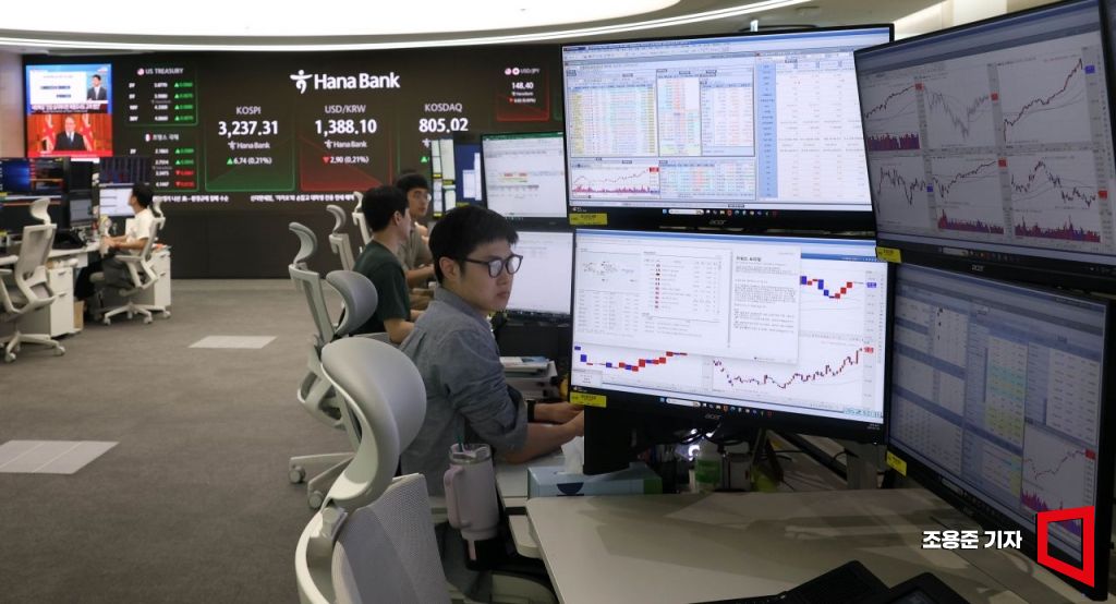 코스피 지수가 4년 만에 최고치를 넘어서며 연일 기록을 경신하고 있는 가운데 30일 서울 중구 하나은행 딜링룸 모니터에 코스피를 비롯해 원/환율 등이 표시돼 있다. 이날 코스피는 장 초반 3,235대에서 강보합세를 보이고 있다. 오전 9시 2분 현재 코스피는 전장보다 7.53포인트(0.23%) 오른 3,238.10을 보이고있다.