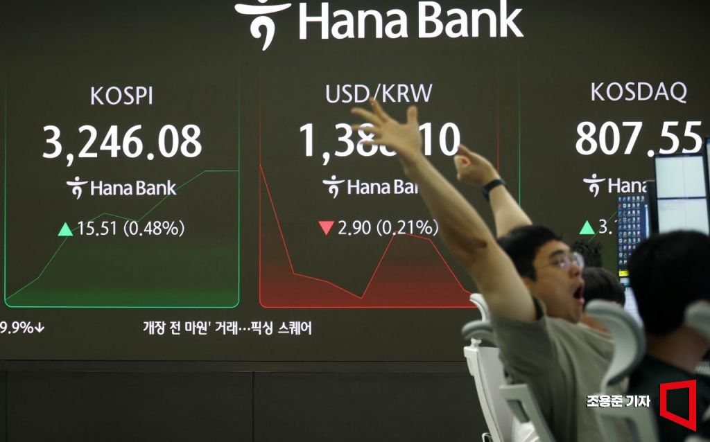 코스피 지수가 4년 만에 최고치를 넘어서며 연일 기록을 경신하고 있는 가운데 30일 서울 중구 하나은행 딜링룸 모니터에 코스피를 비롯해 원/환율 등이 표시돼 있다. 이날 코스피는 장 초반 3,235대에서 강보합세를 보이고 있다. 오전 9시 2분 현재 코스피는 전장보다 7.53포인트(0.23%) 오른 3,238.10을 보이고있다.