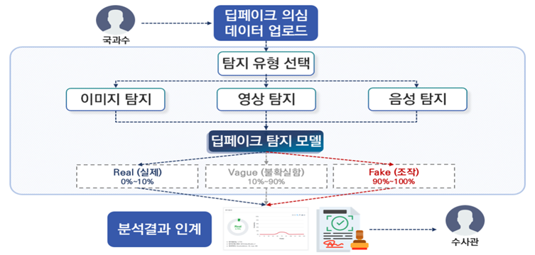 AI 딥페이크 분석모델 활용 프로세스. 행안부