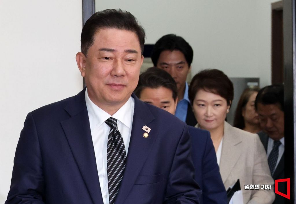 김병기 더불어민주당 당대표 직무대행 겸 원내대표가 30일 국회에서 열린 최고위원회의에 참석하고 있다.