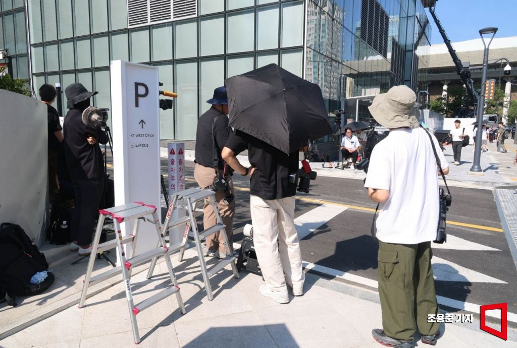 윤석열 전 대통령이 김건희 특검 소환조사에 불응하며 출석하지 않은 29일 서울 광화문 KT빌딩에 마련된 특검사무실 앞에 취재진들이 대기하고 있다. 2025.7.29 조용준 기자