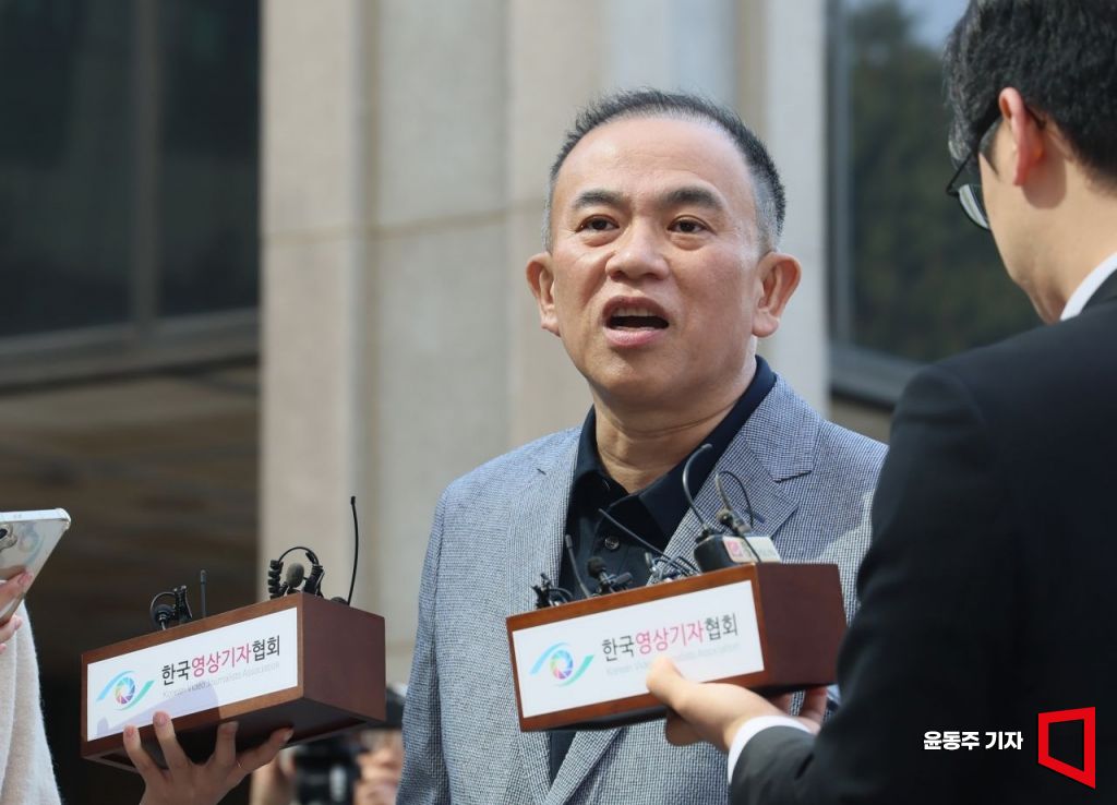 명태균 씨가 29일 서울 고등검찰청 앞에서 취재진 질문에 답하고 있다. 검찰은 명씨를 상대로 윤석열 전 대통령 부부의 공천 개입 의혹 등에 대해 조사할 예정이다. 2025.04.29 윤동주 기자